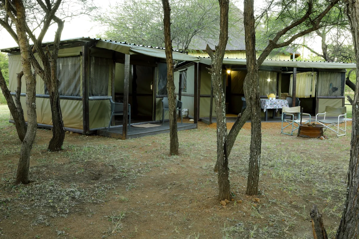Scented Pod Forest Camp is a quiet, family-focused bush camp set beneath a canopy of scented pod trees. The camp features two permanent tented rooms facing a nearby waterhole, a separate kitchen, en-suite ablution, open-air bush shower, and two dome tents.