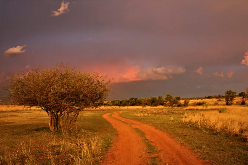 Dan, net vir ‘n paar minute, lyk die wêreld soos iets tussen ‘n droom en ‘n kunswerk. Die wolke kry goue rande, die gras begin gloei, en elke skaduwee word lank en dramaties. Dis Afrika se eie Broadway-toneel — en ons sit op die voorste ry.