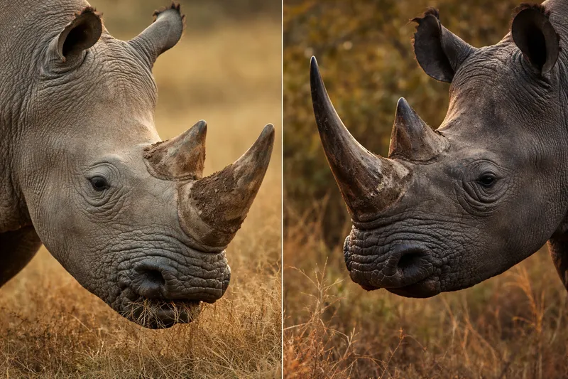 I hold my fingers in the firelight, shaping a hook. “The real difference is here. The black rhino has a pointed, hooked lip — made for plucking leaves, twigs, and shrubs. He is a browser. He chooses. He does not rush.”