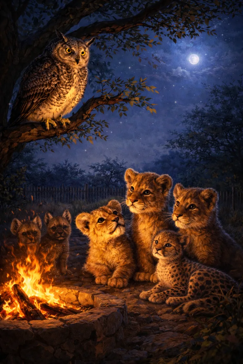 Hoog bo ons, waar ’n ou doringboom al lank voor kampe en paadjies wortel geskiet het, sit die uil.