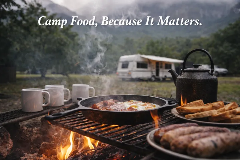 Just honest, practical camp food — cooked slowly, eaten outside, and usually followed by,“We should make this again… maybe.”