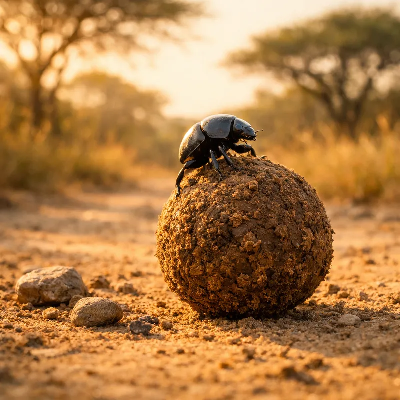 Sometimes from a dung beetle rolling its perfectly round treasure across the road with the determination of a creature that clearly has no interest in anyone’s opinion.